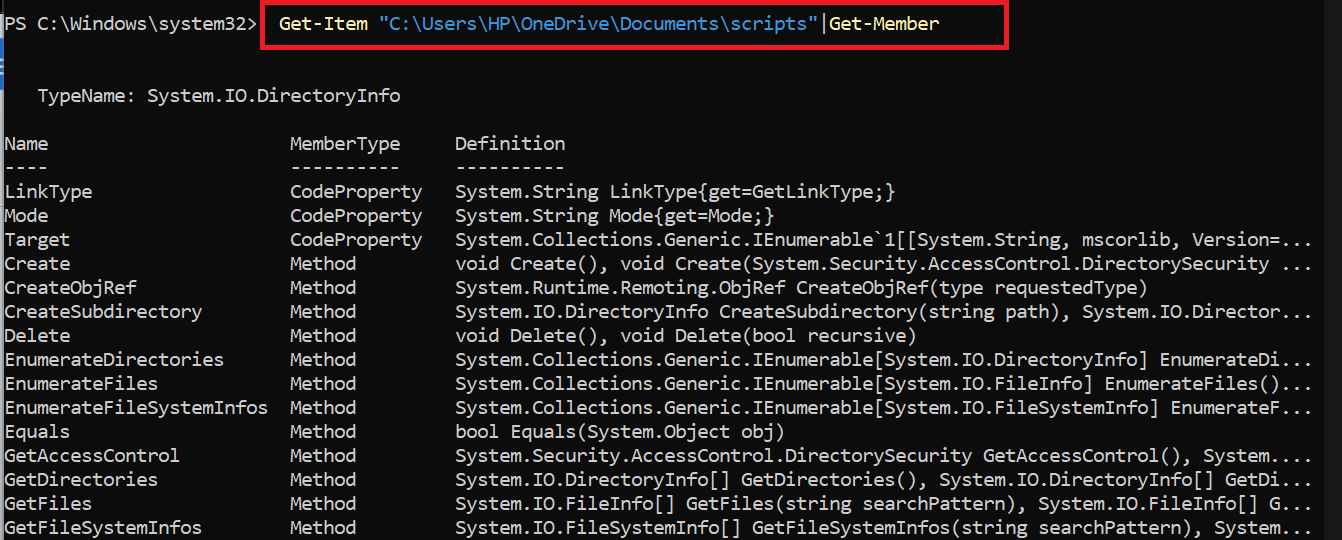 Unlike Get-Item, this command does not retrieve objects but instead analyzes them, displaying their properties and methods.