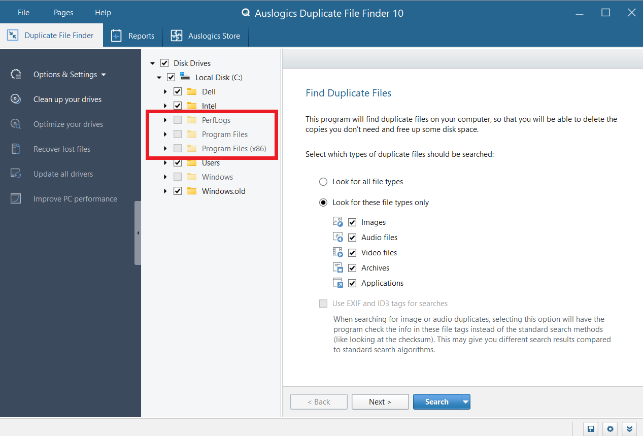 I was impressed with the customization options that Auslogics Duplicate File Finder offers.
