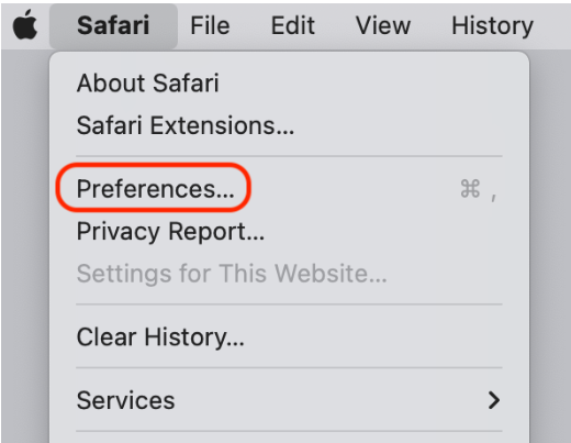 - Open Safari and click on the Safari menu. Select Preferences from the menu.