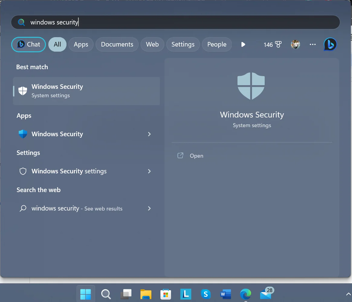 - Click the Start button, type Windows Security in the search box, and hit Enter. This will launch the Windows Security section in the Settings app.