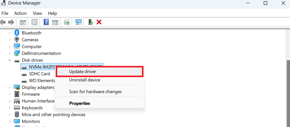 - Right-click on the drive with the issue, if it appears, and select Update driver.