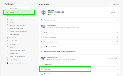 Deleting Saved Passwords on Microsoft Edge
