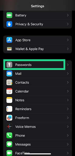 - Select Passwords from the menu.