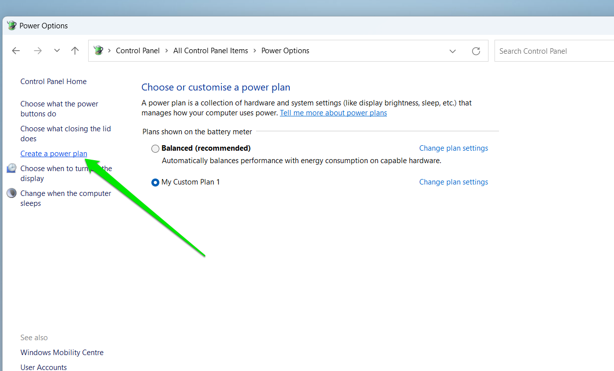 After creating the plan, change its settings to ensure Windows never turns off your hard disk. Follow these steps: