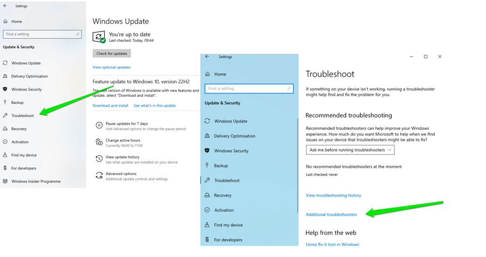- Click Additional Troubleshooters under the Troubleshoot page.