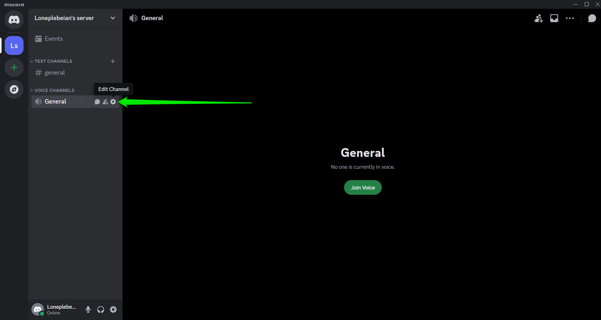 - Hover your mouse over the voice channel and click the settings icon. You can also right-click the voice channel and select Edit Channel from the drop-down menu.
