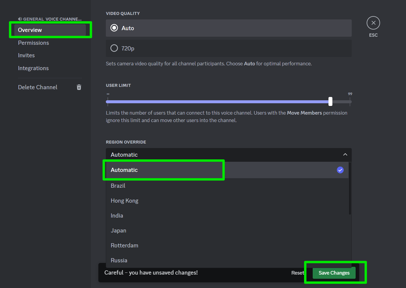 It could be that Discord is having issues connecting because of your server region. Choose a different one (which could be closer to your actual location) and try initiating a VoIP chat again. Follow these steps: