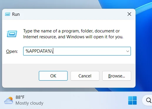 Windows + Rshortcut to launch the Run dialog box. - Type