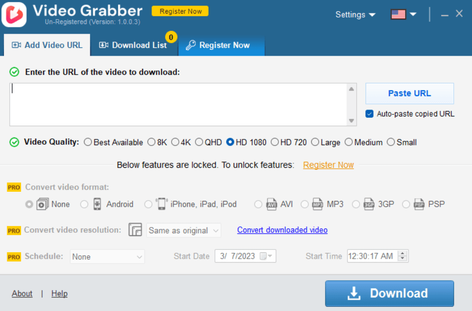 Also, Video Grabber lets you choose when it begins downloading, so you may have it start when it’s most convenient.