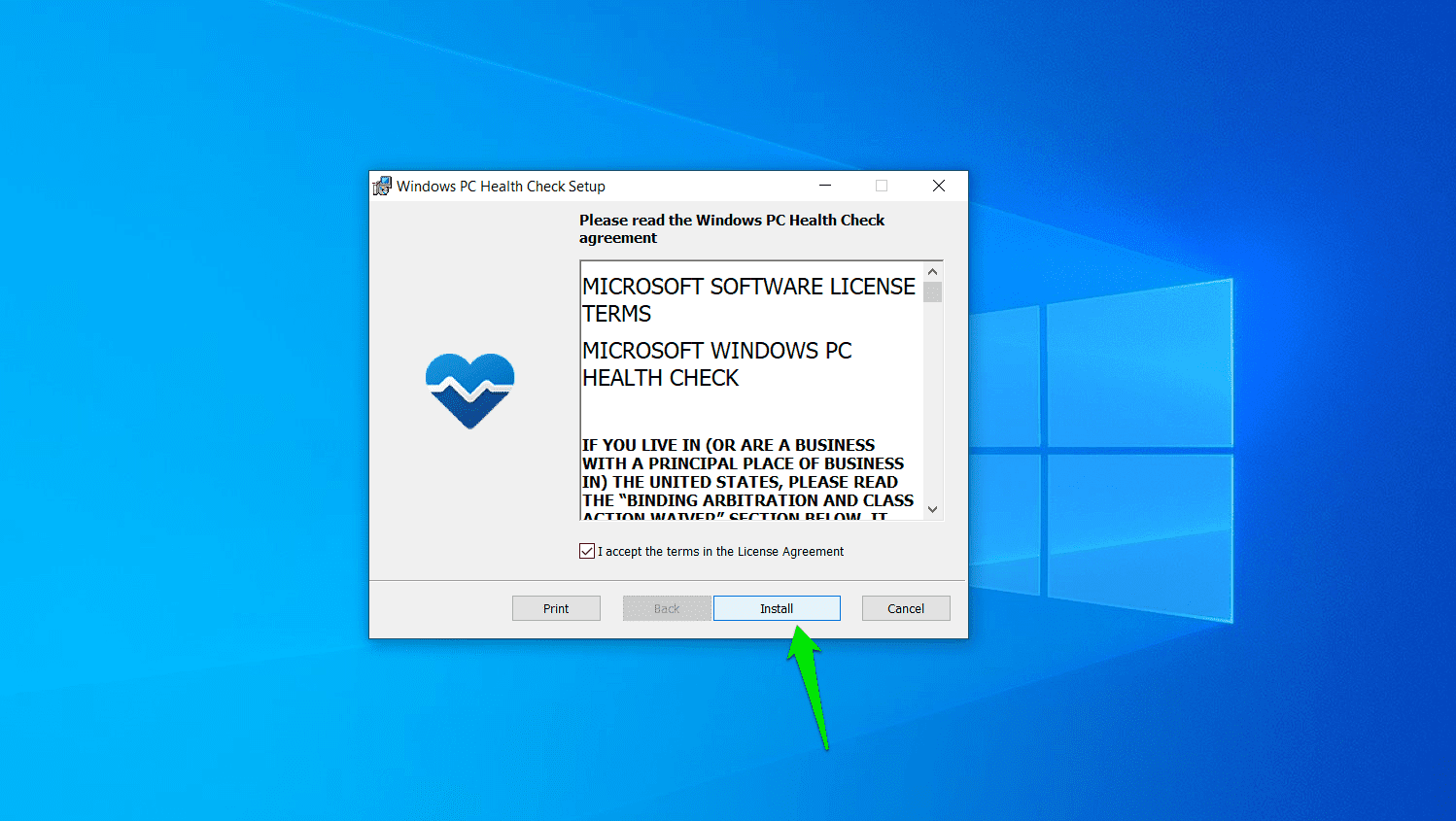 - Click on “I accept the terms in the License Agreement” and select Install when you see the setup page.