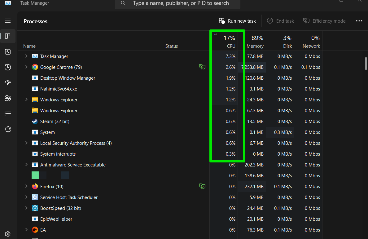 - Open the Task Manager and expand the program category driving up CPU usage.